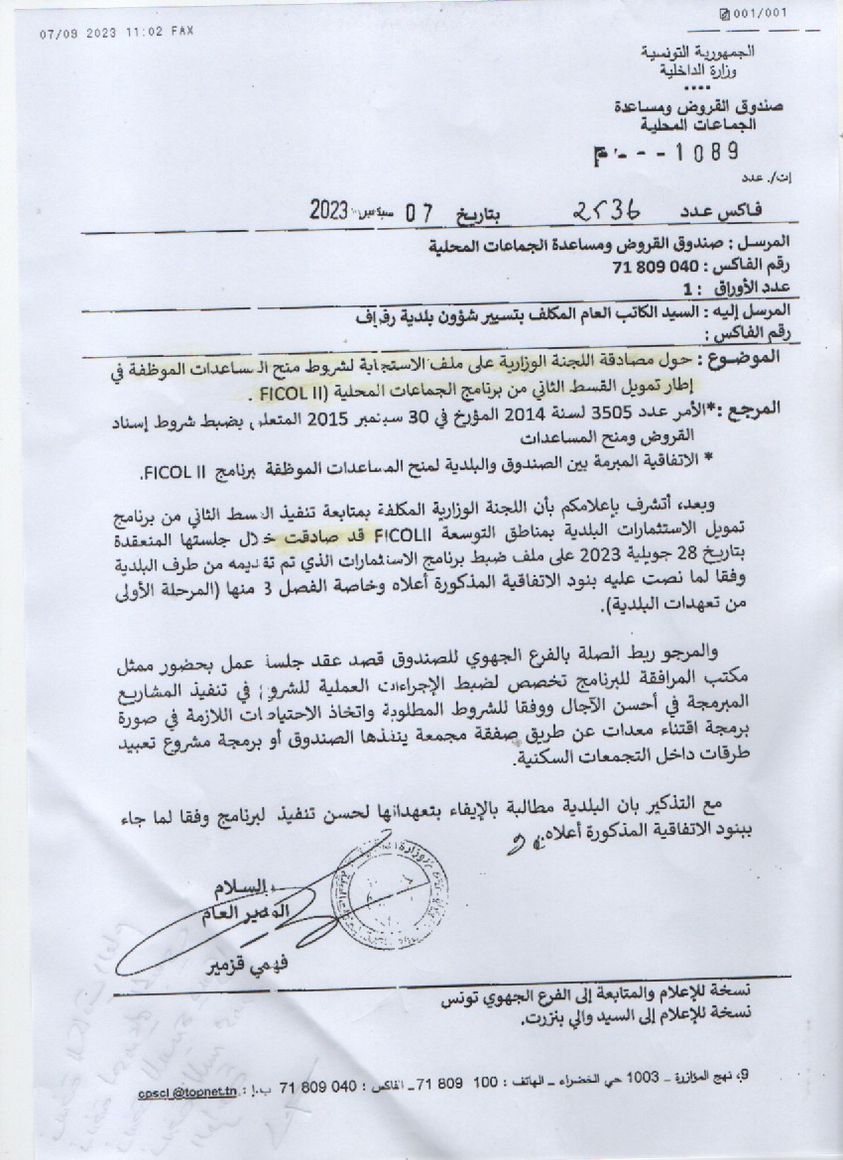 مصادقة اللجنة الوزارية على ملف الإستجابة لشروط منح المساعدات الموظفة في إطار تمويل القسط الثاني من برنامج الجماعات المحلية ( FICOL II) بلدية رفراف 08 سبتمبر 2023 الزيارات: 217 Facebook Twitter السابق التالي